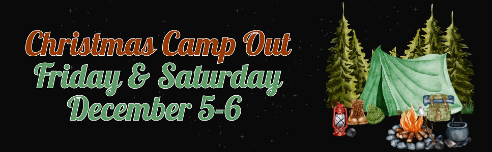 Bring your own food and beverages for dinner and breakfast. We supply the multiple grills and a smoker, and will have charcoal and plenty of firewood. We also have horseshoes and washer toss. Bring musical instruments, we love it when people sing and play at our campouts! Remember, we will be camping for 2 nights (Dec 5th and 6th), you are welcome to come for one night or for both. In addition, our Annual Christmas Pizza Party will be held at the church Saturday, Dec 6th at 5pm.